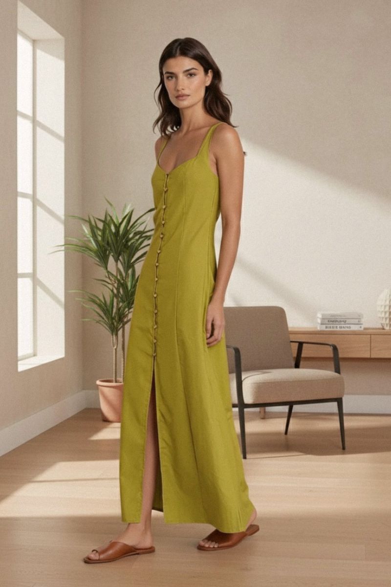 NOA Satin Midi Dress with Deep Back Slit (Champagne Beige)