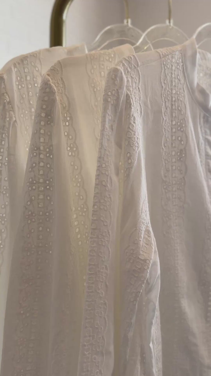 THEA Embroidered V-Neck Eyelet Blouse (White)