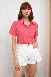 JANE Cropped Button-Down Eyelet Top (Watermelon Pink)