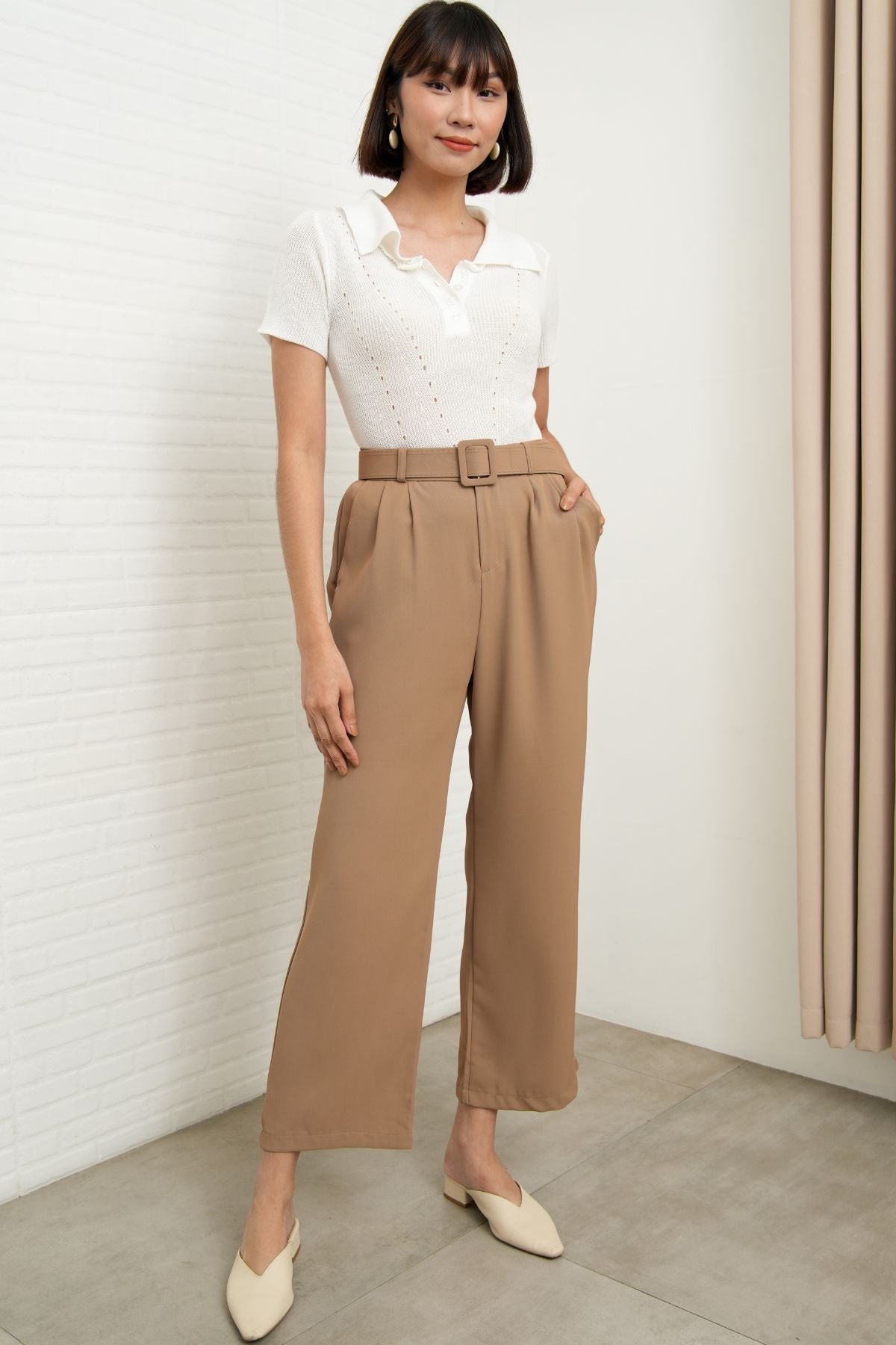 SASKIA Belted High-Waist Tailored Trousers (Latte Brown)
