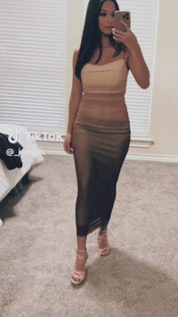 MALIA Ruched Ombré Tulle Midi Dress