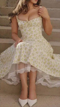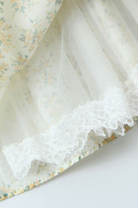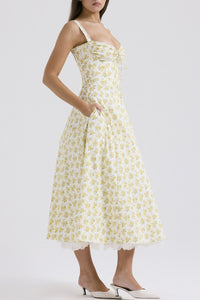 REBECCA Floral Bustier Midi Dress w/ Lace Hem (Yellow)