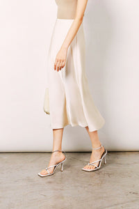 CAROL Satin A-line Flouncy Midi Skirt (Custard Cream)