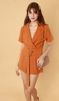 CLEMENTINE Belted Romper (Apricot)