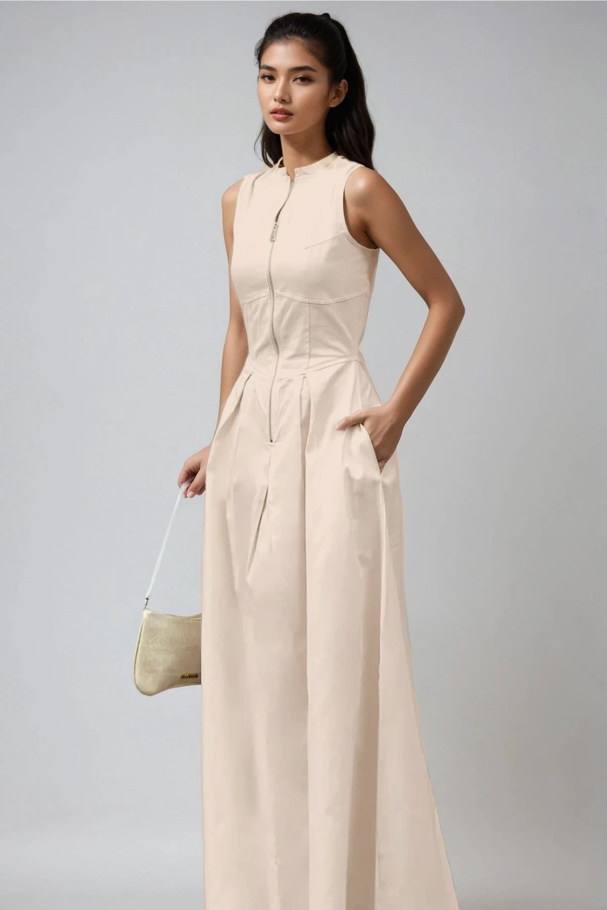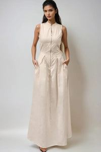 CARA Utility Zip Maxi Dress (Cream Beige)