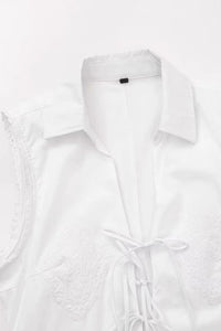 TALIA Embroidered Poplin Lace-Up Mini Dress (White)