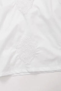 Material: Crisp poplin cotton with tonal embroidery. Fully lined. Non-stretch.