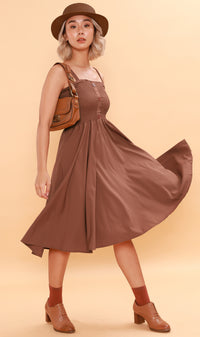 GENEVIEVE Smocked Midi Dress (Chocolate)