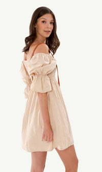 REYA Smocked Puff-Sleeve Linen Dress (Nude)