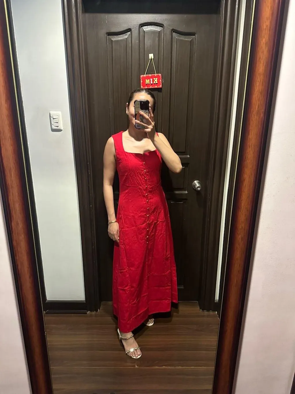 SOLENE Linen Button-Front Maxi Dress (Red)