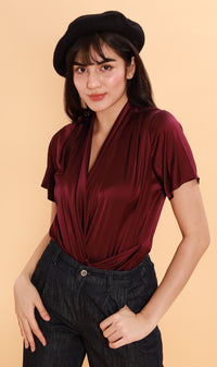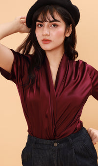 ROSALIE Satin Surplice Top (Wine)