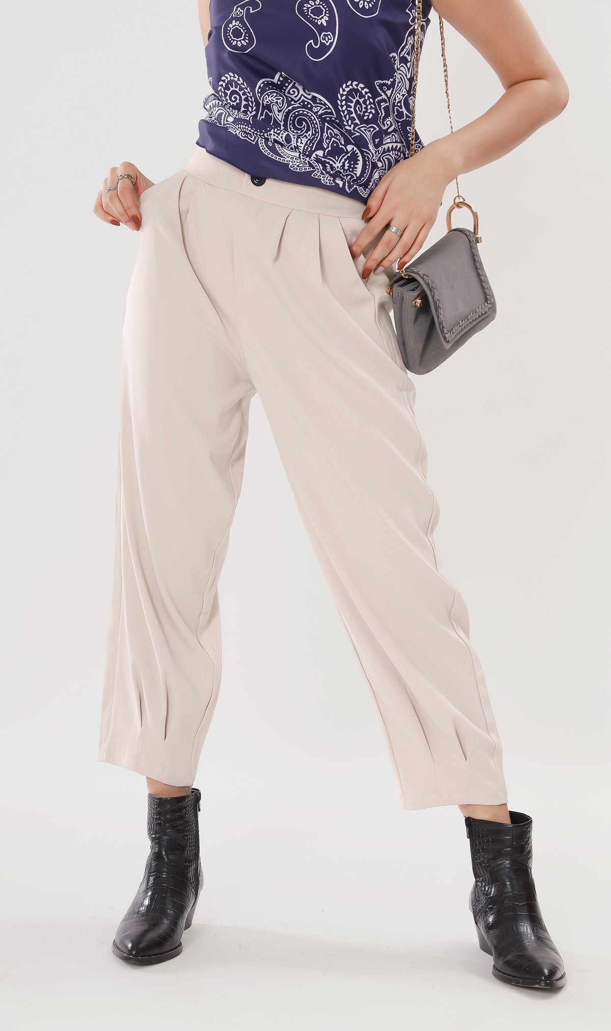 EZRA High-Waisted Pleated Tailored Trousers (Bone)