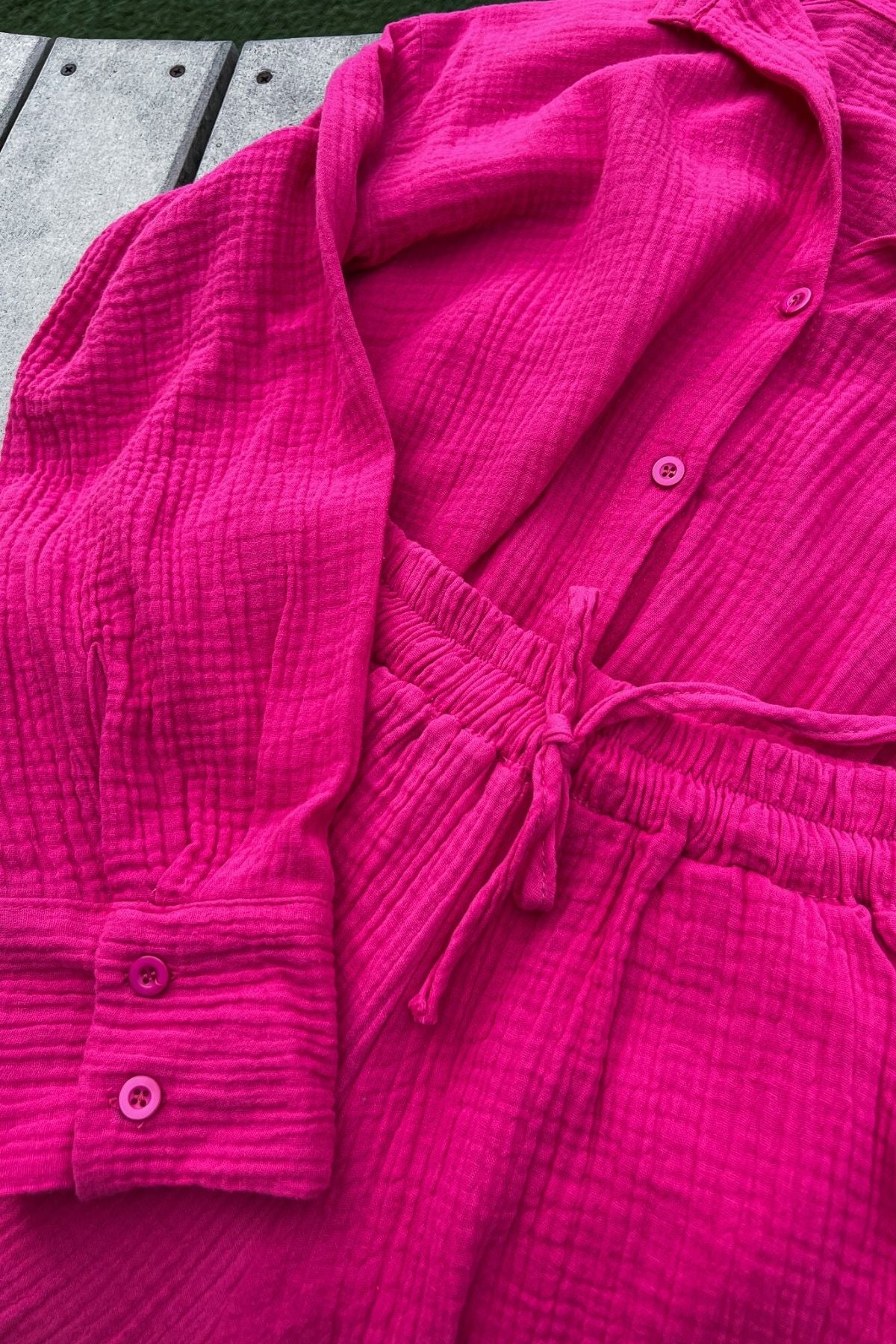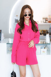 CADENCE Long-Sleeve Button-down Top & Shorts Co-ord (Magenta)