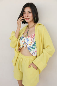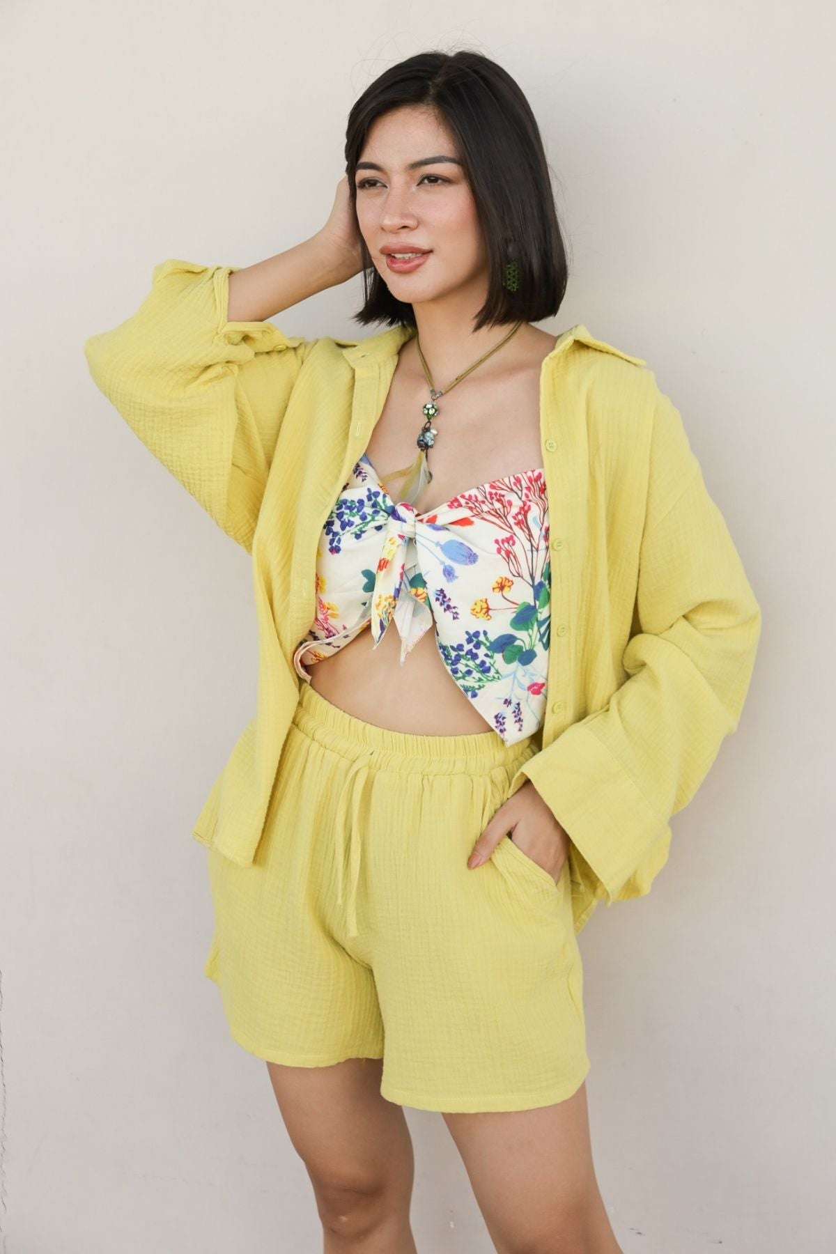 CADENCE Long-Sleeve Button-down Top & Shorts Co-ord (Lime Yellow)