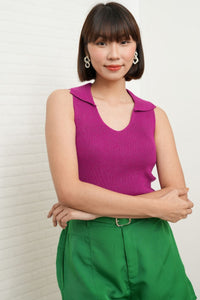 GIGI Sleeveless Collared Rib-Knit Top (Purple Violet)
