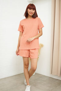 ALESSIA Textured Crepe Top & Shorts Co-ord (Peach Terracotta)