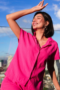 AVERY Linen Top & Shorts Co-ord (Magenta Pink)