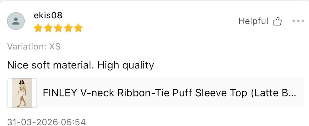 Design & Fit: Features a soft V neckline with a bow-front closure for a feminine, modern touch. Puff sleeves with elasticized cuffs add gentle volume and comfort. Regular top length (not cropped, not long), with a relaxed fit through the body for an effortless but polished look.